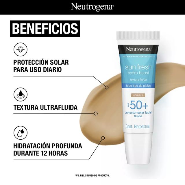 NEUTROGENA Protector Solar Sun Fresh Hydro Boost FPS50 Color 2.0 (TONO CLARO) 40ml.