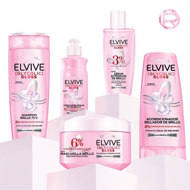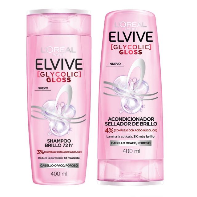 L'OREAL Elvive Glycolic Gloss Shampoo y Acondicionador 400 ml.