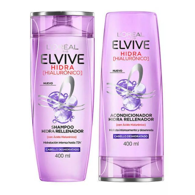 L'OREAL Elvive Hidra Hialurónico Shampoo y Acondicionador 400 ml.